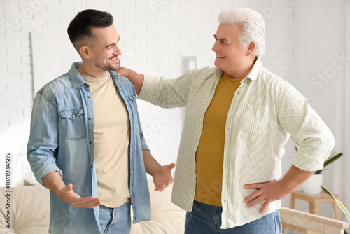 Obraz premium Mature man chatting with his son at home