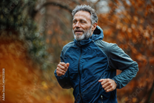 © Mihai Zaharia, Obraz premium Mature Man Jogging in Autumn