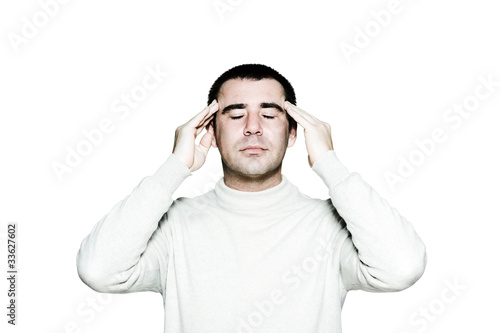 © snaptitude, Naklejka premium Mature man massaging his temples
