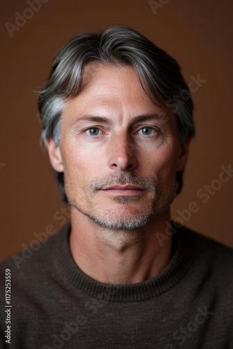 © BrandwayArt, Fototapeta premium Mature man with silver hair and thoughtful look against dark backdrop