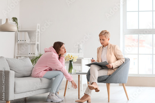 © Pixel-Shot, Obraz premium Mature psychologist working with patient in office