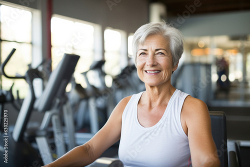 © AI_images, Obraz premium mature senior woman at gym.
