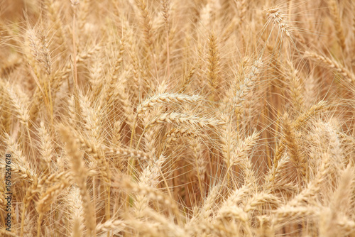 Fototapeta premium Mature wheat field ready for harvesting in golden agricultural setting