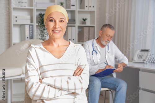 Fototapeta premium Mature woman after chemotherapy smiling in clinic