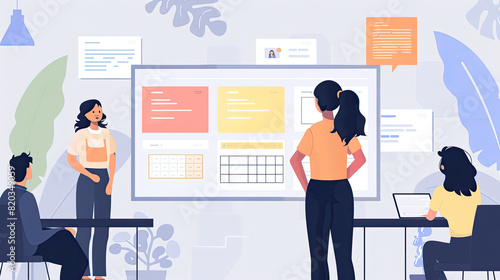 Fototapeta premium Mature woman leading a discussion on UX/UI design with a team