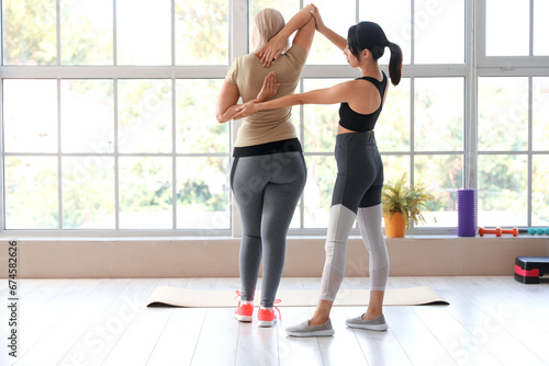 Fototapeta premium Mature woman training with therapist in rehabilitation center