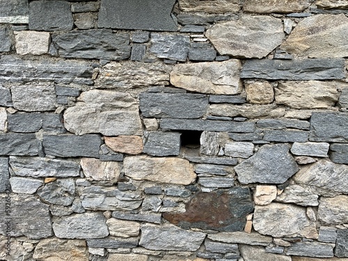 © hachri, Obraz premium Mauer aus Stein / Graue Steinmauer / Natursteinmauer - / Textur / Texturen und Hintergrund