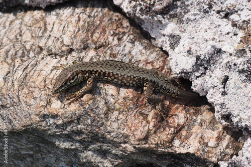 © Helge, Naklejka premium Mauereidechse, Podarcis muralis, Südtirol, Italien