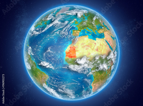 Fototapeta premium Mauritania on planet Earth in space