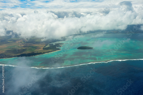 Naklejka premium Mauritius beach island aerial view, beautiful colours