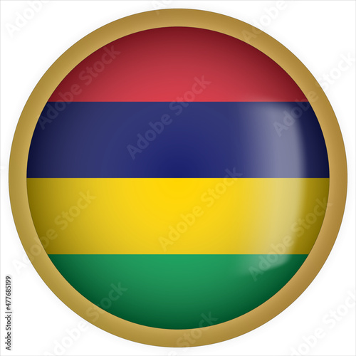 Fototapeta premium Mauritius 3D rounded Flag Button Icon with Gold Frame