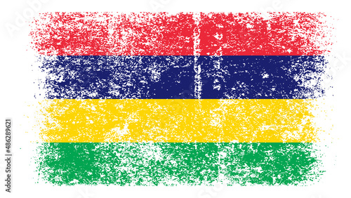 Obraz premium Mauritius Flag Distressed Grunge Vintage Retro. Isolated on White Background