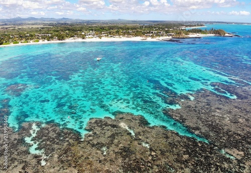 © pettys, Obraz premium Mauritius Island. Beautiful coastline and beach from helicopter.