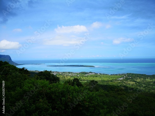 © Schönbacher Gerhard, Fototapeta premium Mauritius, Panorama mit Le Morne und Ile aux Benitiers