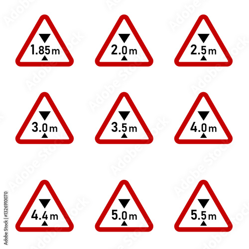 Obraz premium max limit height triangular sign collection in meter 1.85,2,2.5,3,3.5,4,4.4,5,5.5