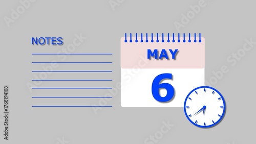 Fototapeta premium May 6 Calendar royal blue color 4k illustration, with Free for Notes and...