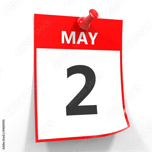 © icreative3d, Fototapeta premium 2 may calendar sheet with red pin.