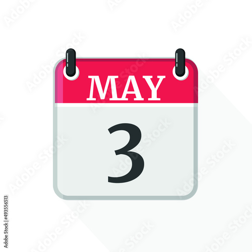 Fototapeta premium May 3 - Daily Calendar Icon in flat design style