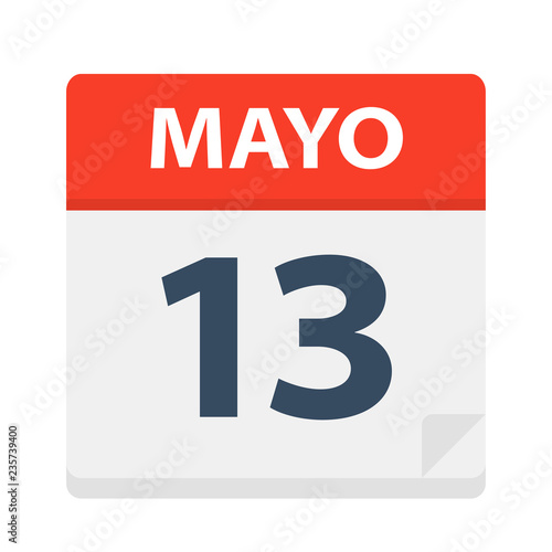 Fototapeta premium Mayo 13 - Calendar Icon - May 13. Vector illustration of Spanish Calendar Leaf