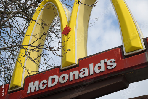 © eugen, Obraz premium McDonald's Canada Golden Arches pylon sign at 1000 Gerrard St E, Toronto