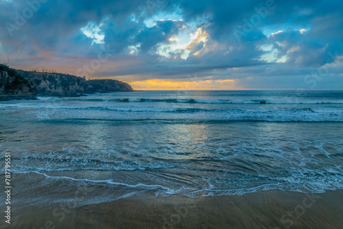 © Merrillie, Fototapeta premium McKenzies Beach Autumn Sunrise with Clouds