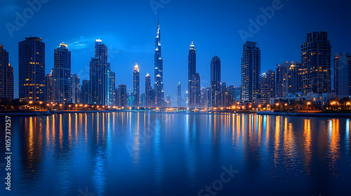 © AI-Arts, Fototapeta premium mdoern skyline at night