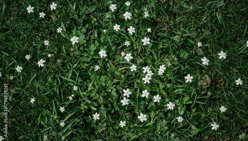 Naklejka premium Meadow adorned with white clover flowers, ideal for seasonal floral arrangements