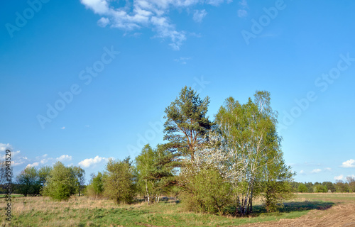 Obraz premium Meadow and blooming spring trees in Poland.