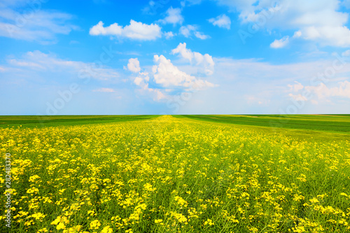 © charmphoto, Fototapeta premium Meadow and blue sky with clouds