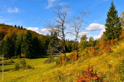 © kato08, Naklejka premium Meadow at Kocevski Rog, Slovenia in autumn colors