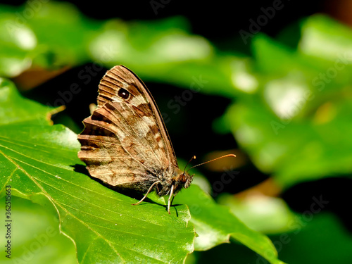 Fototapeta premium Meadow brown on a leaf of a tree