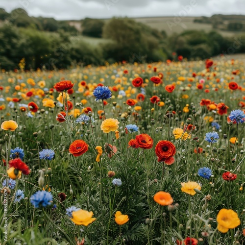 Fototapeta premium Meadow filled with a variety of colorful wildflowers