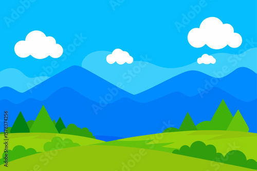 Obraz premium meadow landscape with blue sky background vector