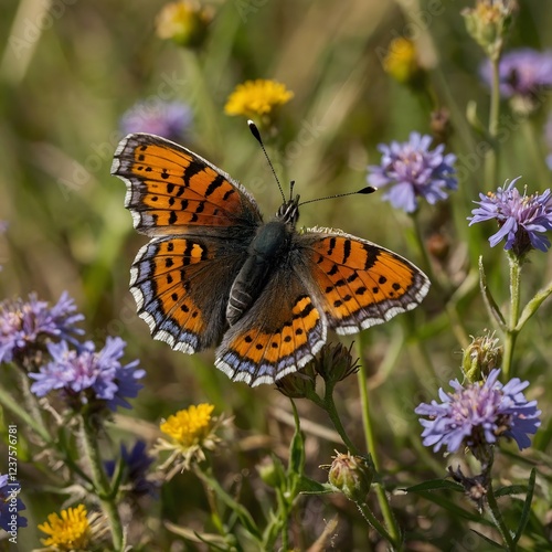 © Chamika, Obraz premium Meadow Magic: Lane’s Metal mark Butterfly in a Colorful Display