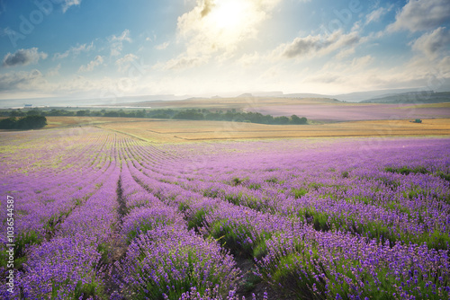 Naklejka premium Meadow of lavender at sunrise.