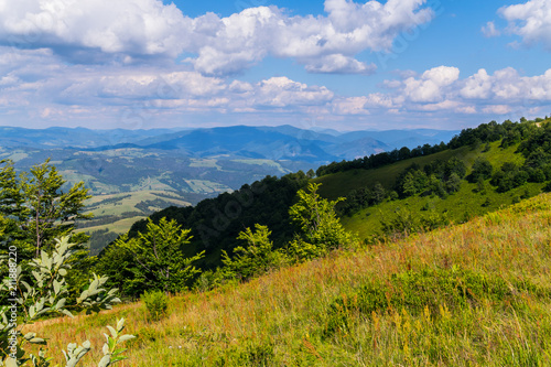 © adamchuk_leo, Obraz premium meadow on a mountain peak with a deciduous forest