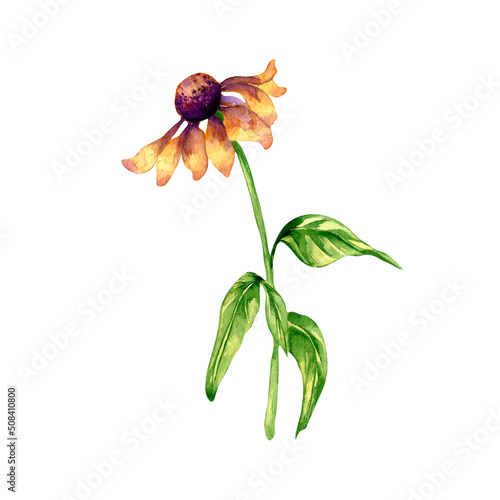 Obraz premium Meadow purple flower, coneflower watercolor illustration on white background.