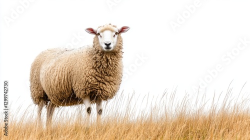 Fototapeta premium Meadow Sheep Isolated View with Sheep with White