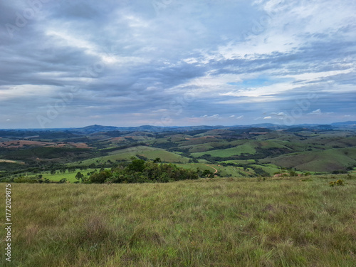 © Leonardo Araújo, Naklejka premium meadow view with clouds and mountains