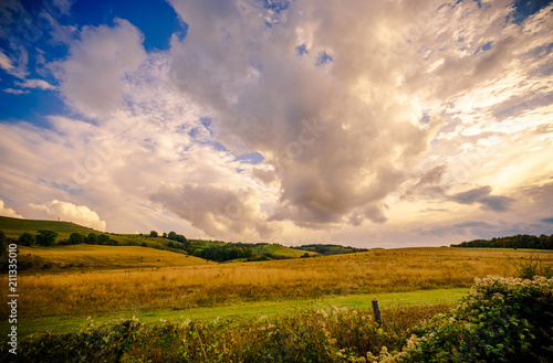 © Pawel Pajor, Fototapeta premium Meadow with beautiful sunset sky