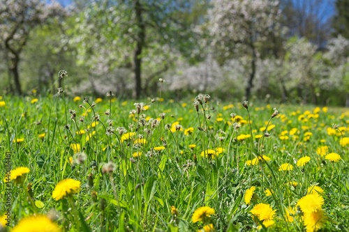 © alexbuess, Obraz premium meadow with dandelion flowers in spring in thuringia