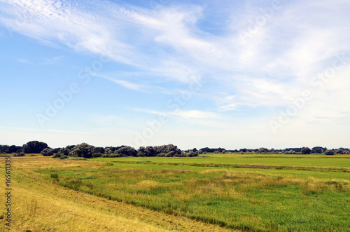 © Mickis Fotowelt, Fototapeta premium Meadows near Elbe River on a sunny day