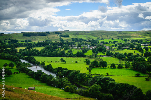© nuttawutnuy, Fototapeta premium Meandering River making its way through lush green rural farmlan