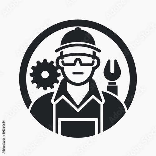 Obraz premium Mechanic icon UI design black round frame flat linear vector icon whte...