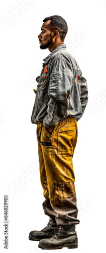 © Monika, Fototapeta premium Mechanic in work outfit isolated on the transparent background PNG.