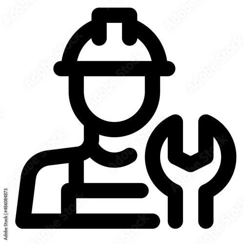 © Ayub Irawan, Obraz premium Mechanic Men With Hard Hat Line Icon Vector