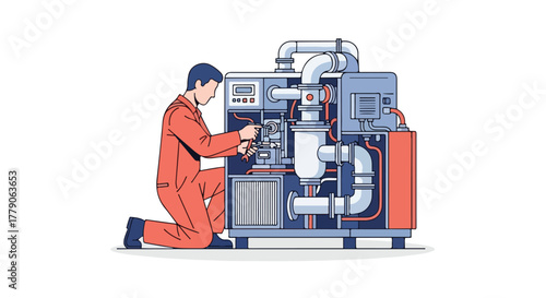 © Outkast, Fototapeta premium Mechanic repairing industrial machine