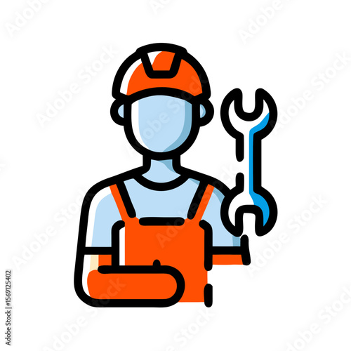 © Oleksii Chornyi, Fototapeta premium mechanic worker in helmet with tool