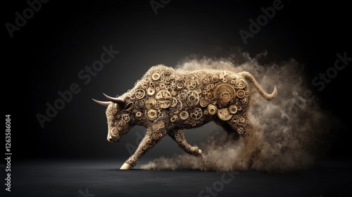 Fototapeta premium Mechanical Bull Crafted from Intricate Gears in Motion