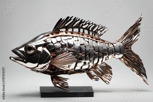 © eestingnef, Fototapeta premium Mechanical chrome fish figurine. Digital illustration.